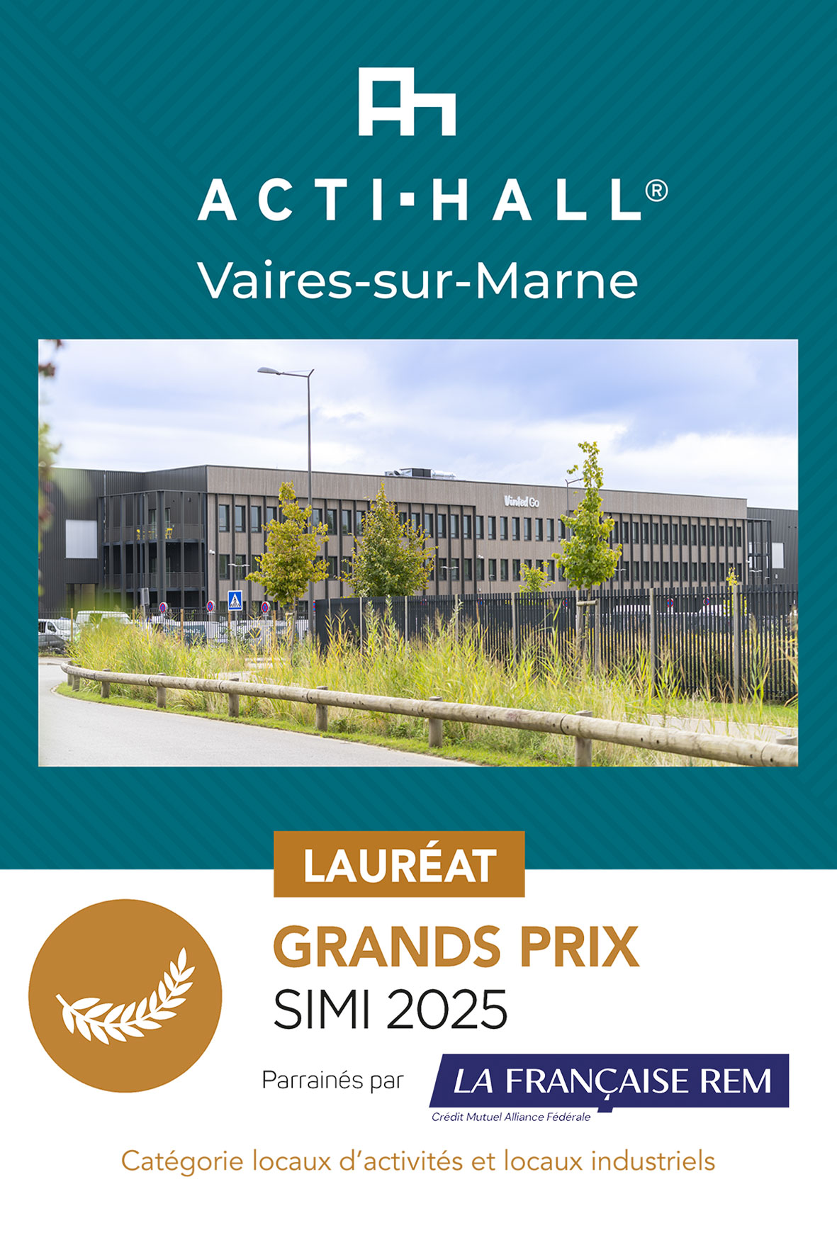 JMG Partners est heureux d’annoncer que le projet Acti-Hall® Vaires-sur-Marne a remporté le Grand Prix du SIMI 2025 dans la catégorie « Locaux d’activité et locaux industriels ».